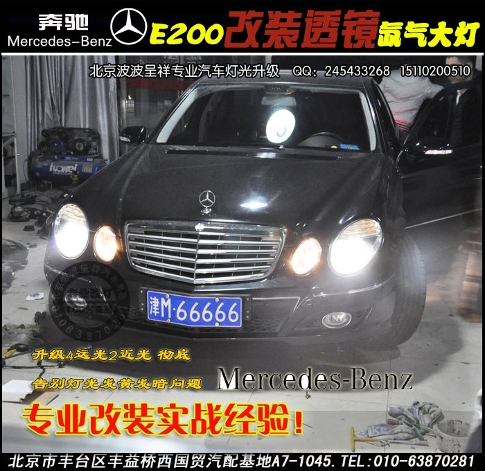 奔馳E260改海拉3雙光透鏡大燈 北京波波實體店改裝 專業(yè)的技工師傅改裝,無破壞的原裝位改裝。即可擁有百萬豪車座駕的燈光享受與行車安全波波專業(yè)改燈,為您的行車安全保駕護航電話:15110200510QQ:24543 ...