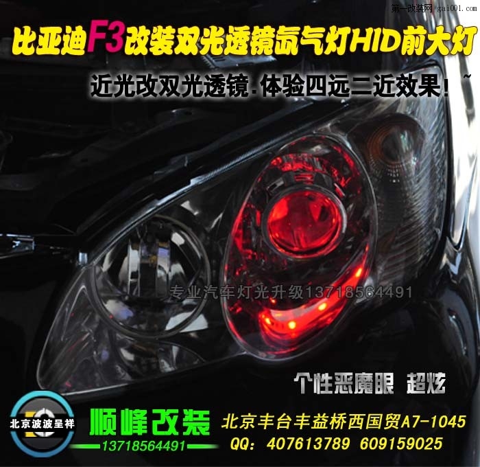 比亞迪F3改海拉5雙光透鏡氙氣燈 北京專業(yè)改透鏡氙燈 專業(yè)的技工師傅改裝,無破壞的原裝位改裝。即可擁有百萬豪車座駕的燈光享受與行車安全波波專業(yè)改燈,為您的行車安全保駕護航電話:13718564491QQ:393 ...