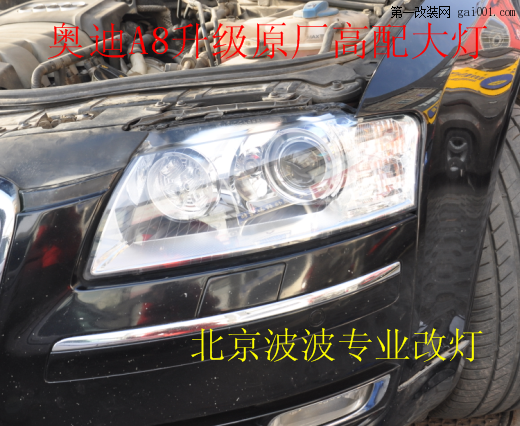 奧迪A8改燈 升級原廠高配大燈總成 完全實現一體化無損安裝,不需要更改線路,不需要再買任何配件,直接替換原車大燈。把原車大燈拆下,把此大燈換上即可,即插即用。北京豐臺豐益橋西國貿汽配基地A7-1045電話微信: ...