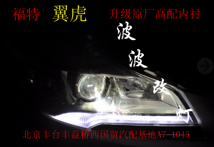 福特翼虎改燈 升級原廠高配內(nèi)襯 完全實現(xiàn)一體化無損安裝,不需要更改線路,不需要再買任何配件,直接替換原車大燈。把原車大燈拆下,把此大燈換上即可,即插即用。北京豐臺豐益橋西國貿(mào)汽配基地A7-1045 ...