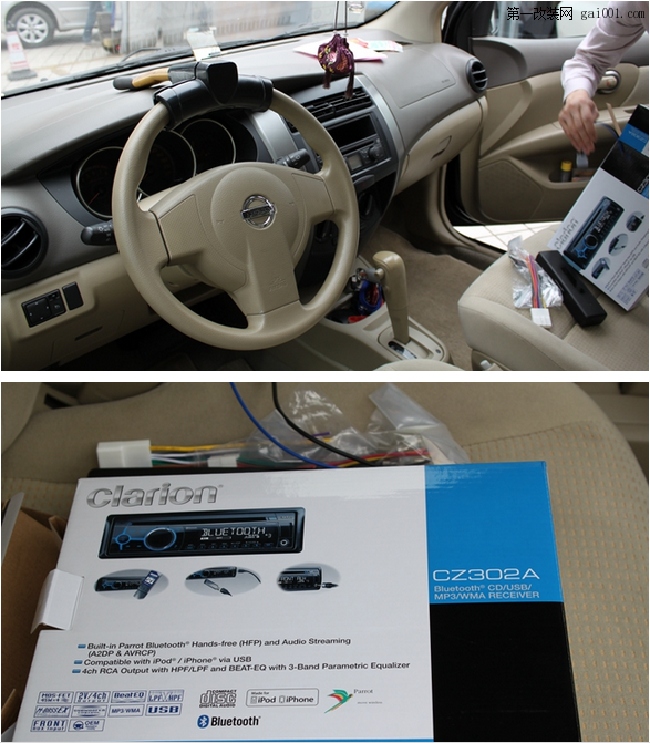 日產(chǎn)驪威音響大改造歌樂CZ302A,帶藍(lán)牙,支持iphone,無線功能強(qiáng)大。效果圖還沒裝上面框,上了的話美的一塌糊涂